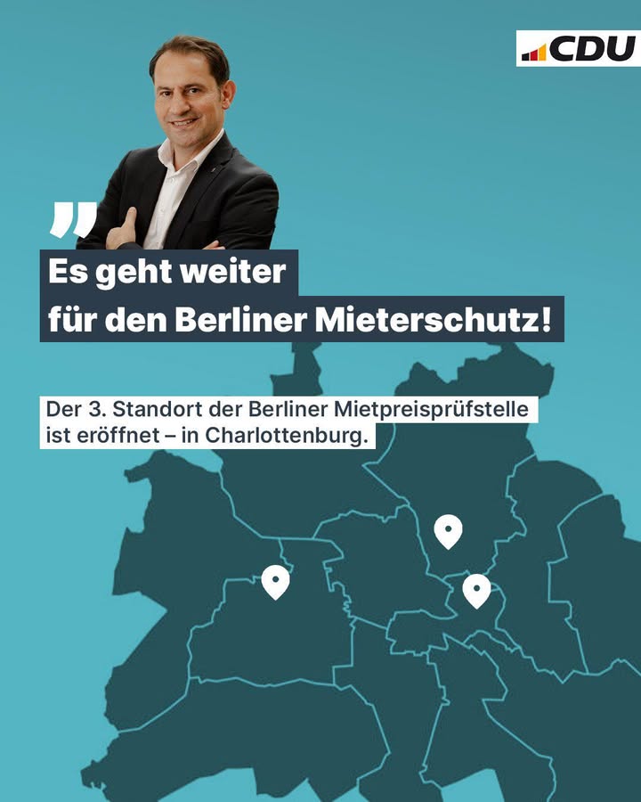 Ich freue mich, dass die von uns initiierte Mietpreisprüfstelle einen weiteren Standort in Berlin (Charlottenburg Mierendorffplatz) eröffnet hat. Auf diese Weise stärken wir den Mieterschutz und gehen gezielt gegen Mietwucher und andere Verstöße vor.