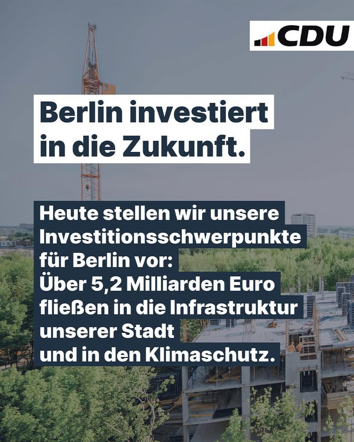 mehrHeute haben wir im Abgeordnetenhaus unser Investitionsprogramm aus dem Sondervermögen vorgestellt. Wir wollen in unsere Infrastruktur, in den Brücken- und Straßenbau, in die Krankenhäuser uvm. investieren. Es geht um die Zukunft Berlins und somit in unsere Zukunft. Es war mir als wohnungspolitischer Sprecher besonders wichtig, dass wir 750 Millionen EURO in die Wohnungsbauförderung investieren. Berlin braucht jede bezahlbare Wohnung, damit die Mieten sinken und sich die Menschen keine Sorgen um eine Wohnung machen müssen. Daher heißt es: weiter anpacken!#bezahlbarerwohnraum #bezahlbareswohnen #infrastruktur #Wohnungsbauförderung #engagiert